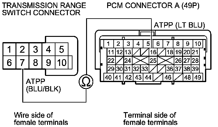 Repair an open in the wire between PCM connector terminal A16 and the transmission range switch connector.�