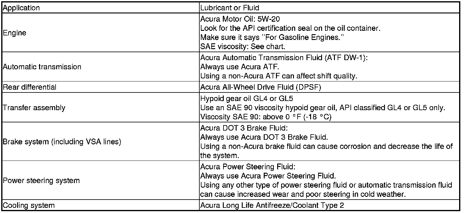 Home >> Acura >> 2011 >> ZDX V6-3.7L >> Repair and Diagnosis >> Specifications >> Fluid Type Specifications >> Fluids
