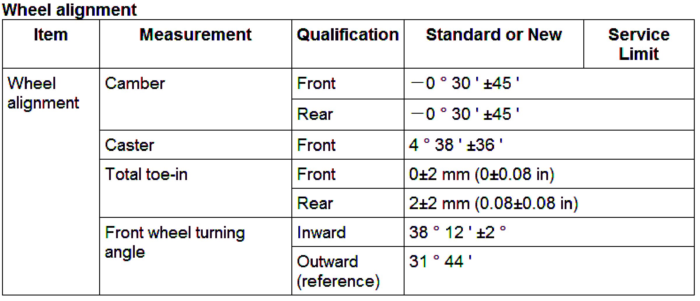 Wheel Alignment Specifications