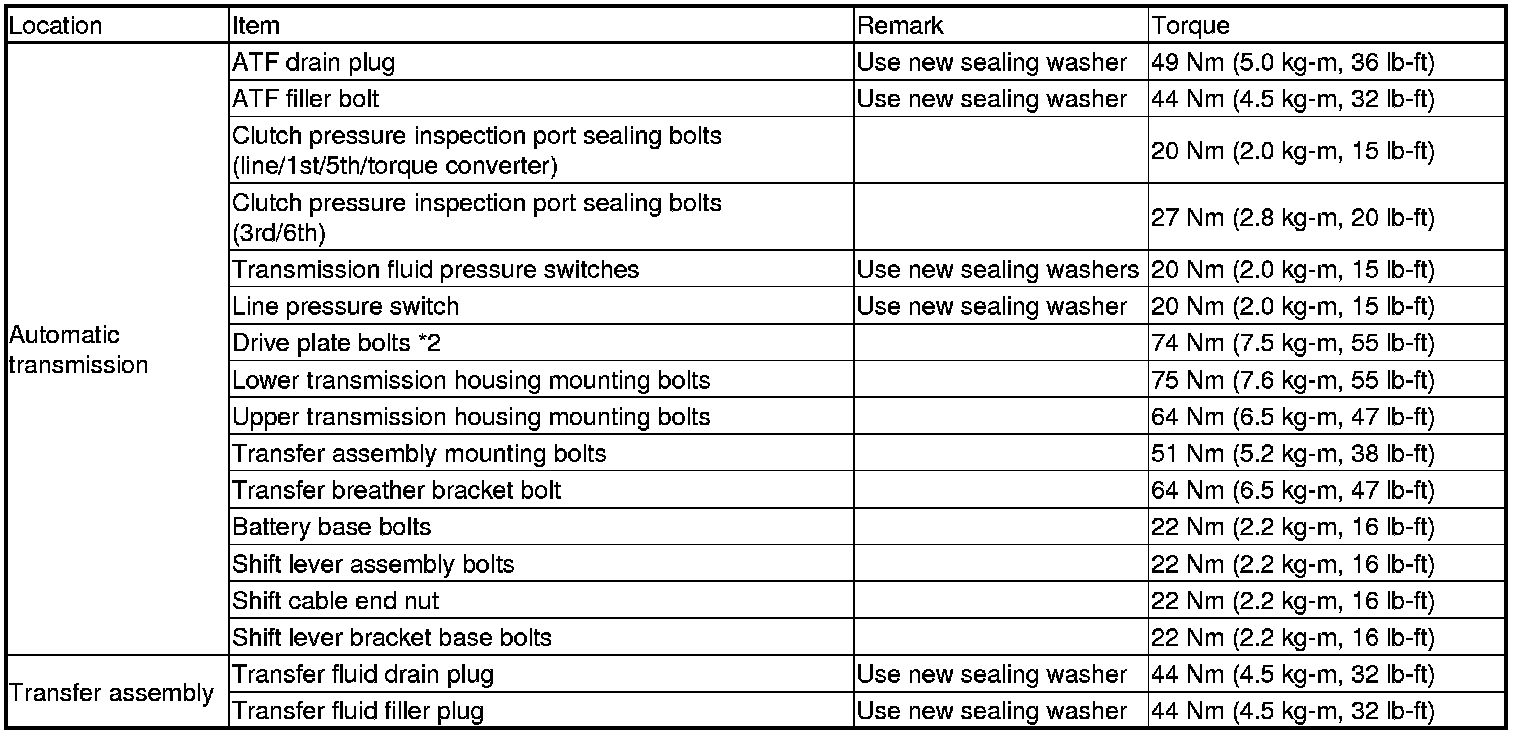 Home >> Acura >> 2011 >> ZDX V6-3.7L >> Repair and Diagnosis >> Specifications >> Mechanical Specifications >> Transmission and Drivetrain >> System Specifications >> Torque Specifications