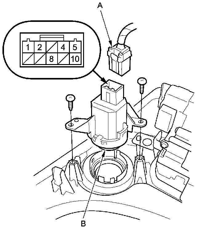 2. Disconnect the 10P connector (A) from the engine start/stop switch (B).