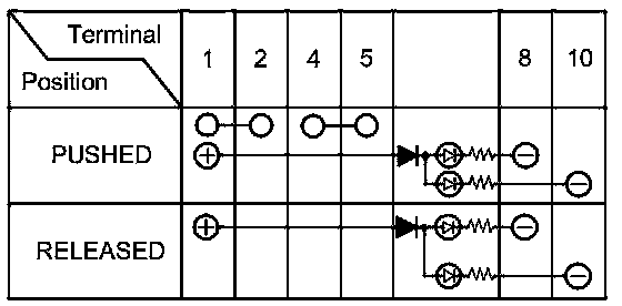 4. Check for continuity between the terminals in each switch position according to the table.