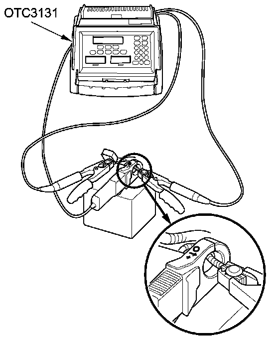 1. Connect the alternator, regulator, battery, and starter tester (OTC3131) to the battery as shown.