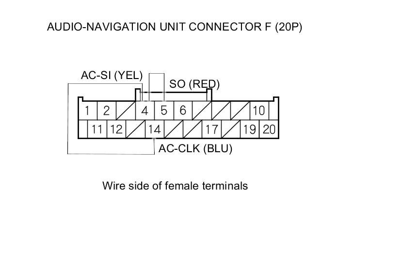 10. Connect the audio-navigation unit connector F (20P) terminals No. 4, No. 5, and No. 14 with jumper wires.