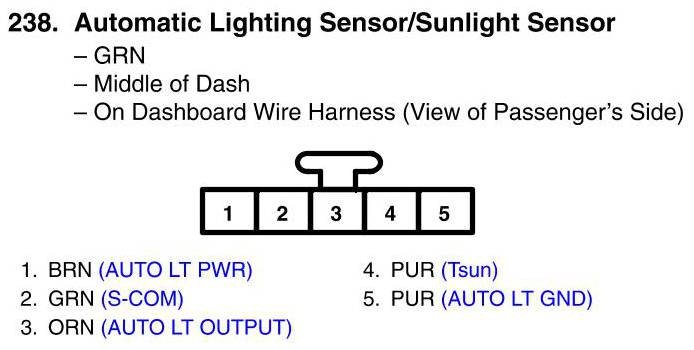 View 238 - Automatic Lighting Sensor/Sunlight Sensor Connector View