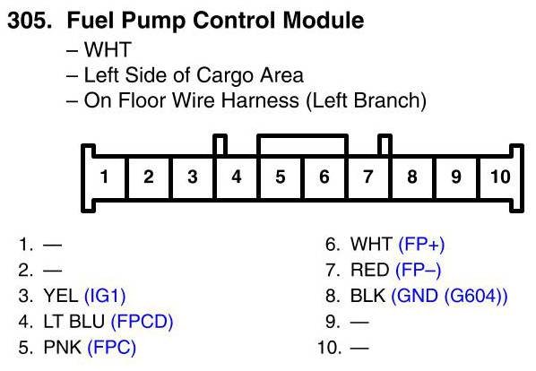 View 305 - Fuel Pump Control Module Connector View