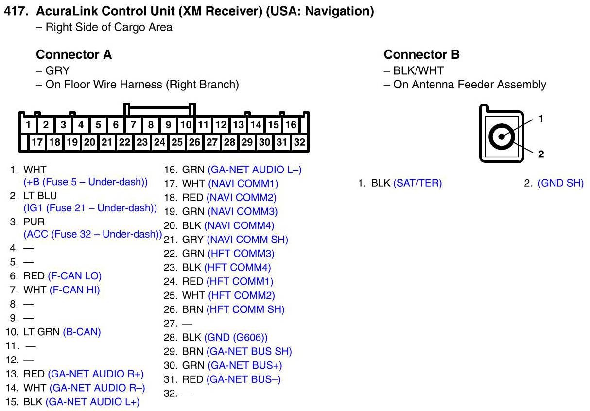 View 417 - AcuraLink Control Unit (XM Receiver) Connector View (USA: Navigation)