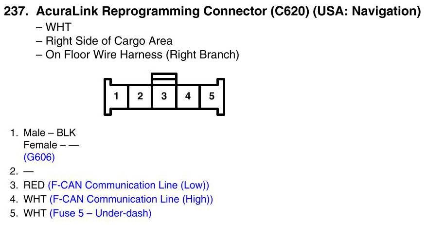 AcuraLink Reprogramming Connector (C620) Connector View (USA: Navigation)