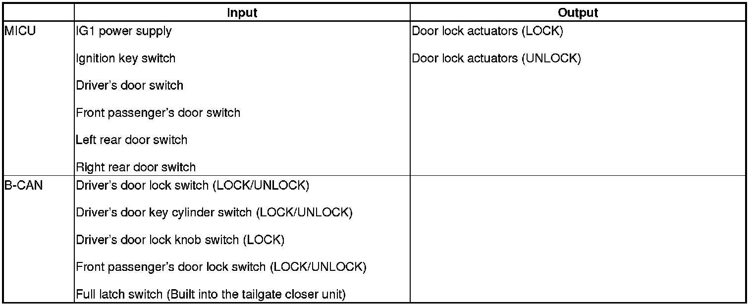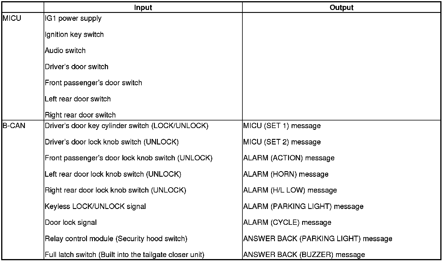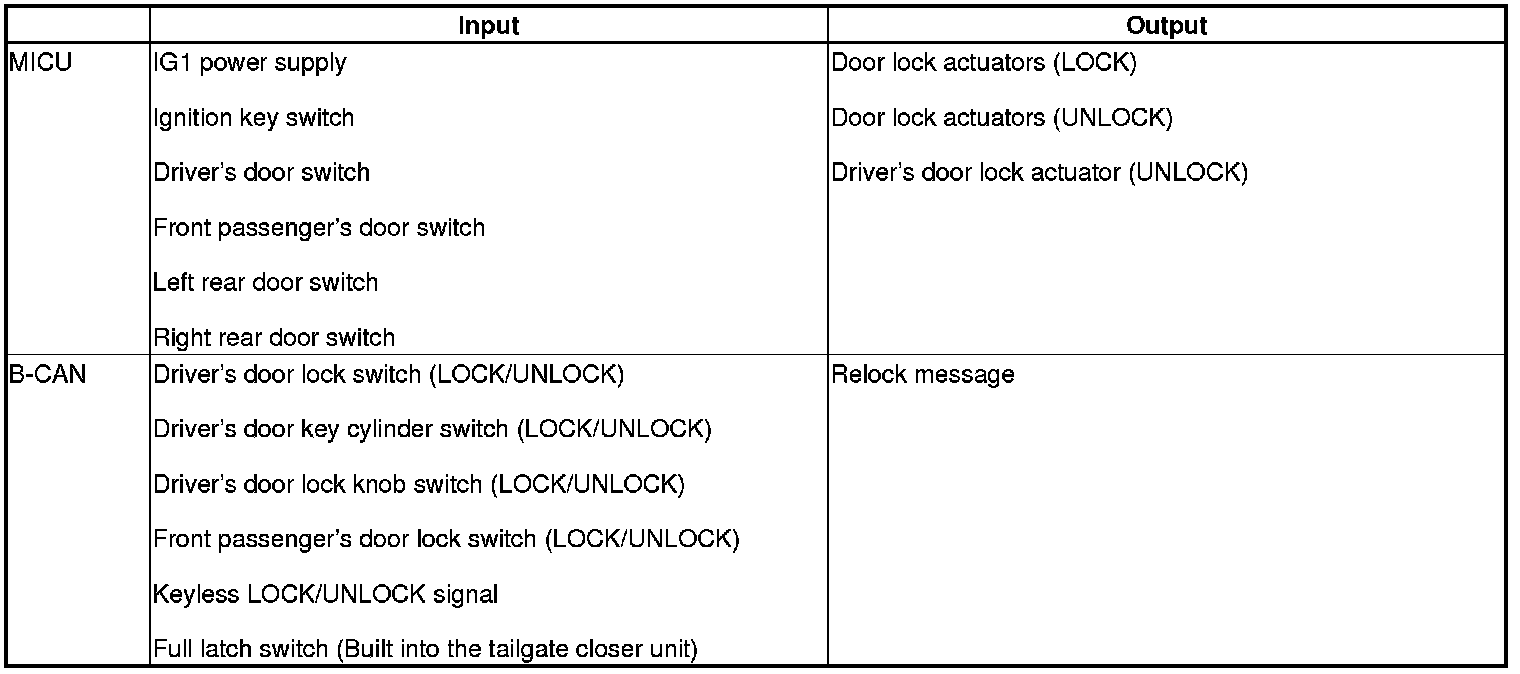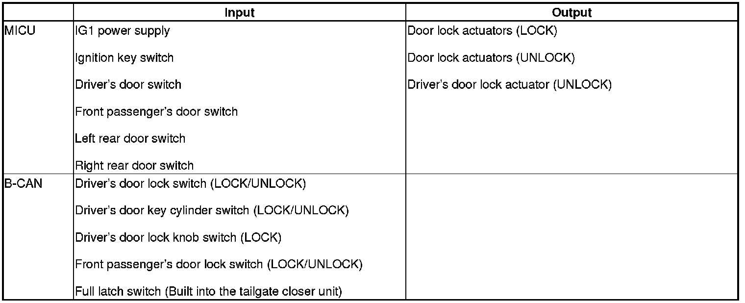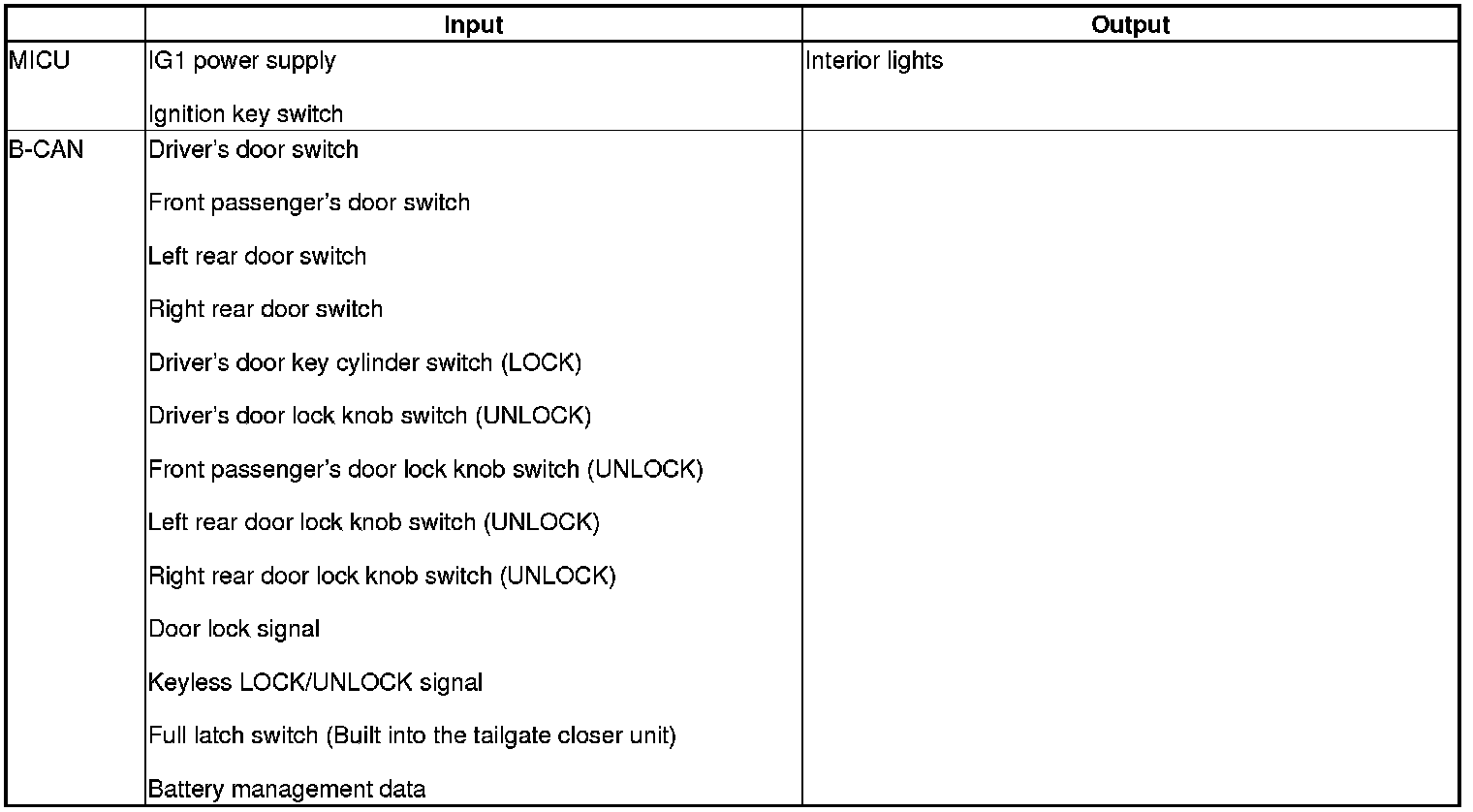 When any of the data from the B-CAN circuit cannot be received within a specified time, or an unusual combination of data is recognized, the MICU moves to the software fail-safe mode. The data that was not received is forced to a pre-programmed value.