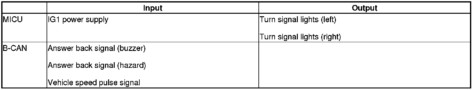 The MICU controls the turn signal/hazard warning lights based on inputs from each switch.