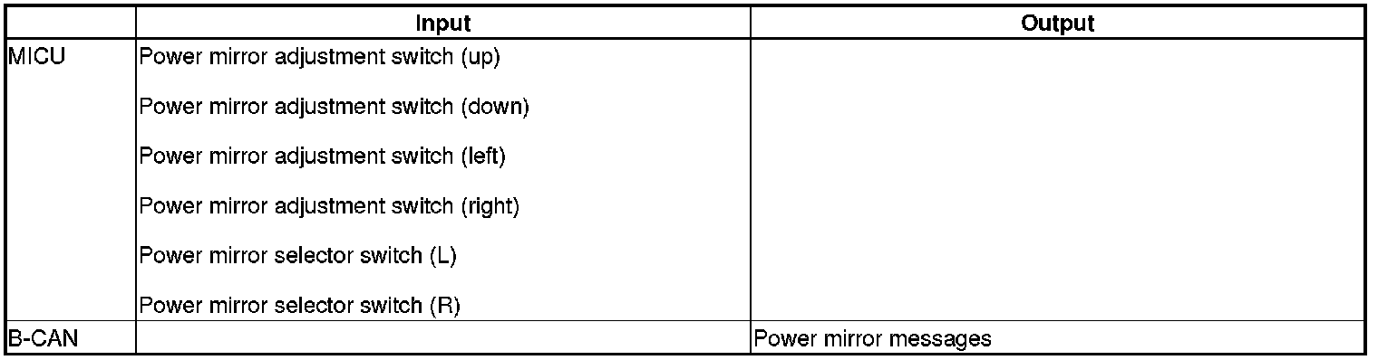 The MICU controls the power mirror based on inputs from each switch.
