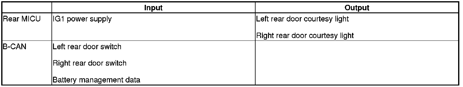 The rear MICU controls the rear door courtesy lights based on inputs from each switch.