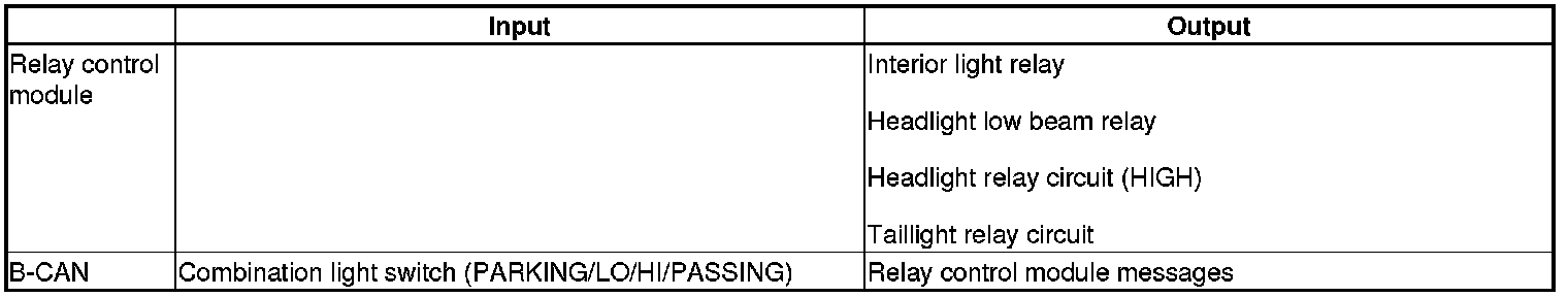 The relay control module controls the exterior lights based on inputs from the combination light switch signals.