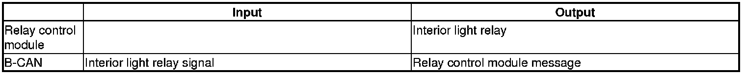 The relay control module controls the interior illuminations based on inputs from the interior light relay signals.