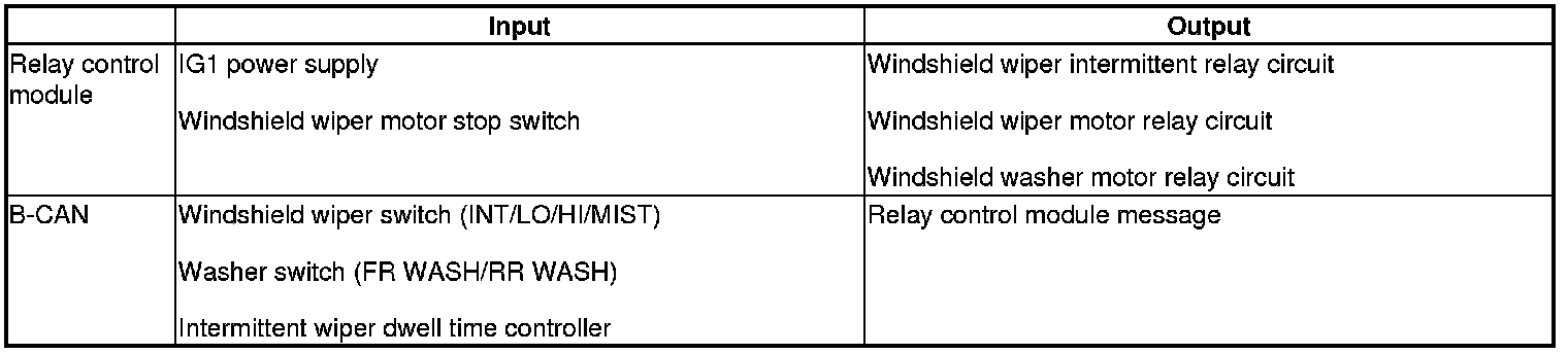 The relay control module controls the windshield wiper/washer based on inputs from each switch.