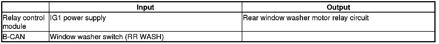 The relay control module controls the rear window washer based on inputs from the window washer switch.