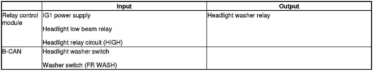 The relay control module controls the headlight washer based on inputs from each switch.