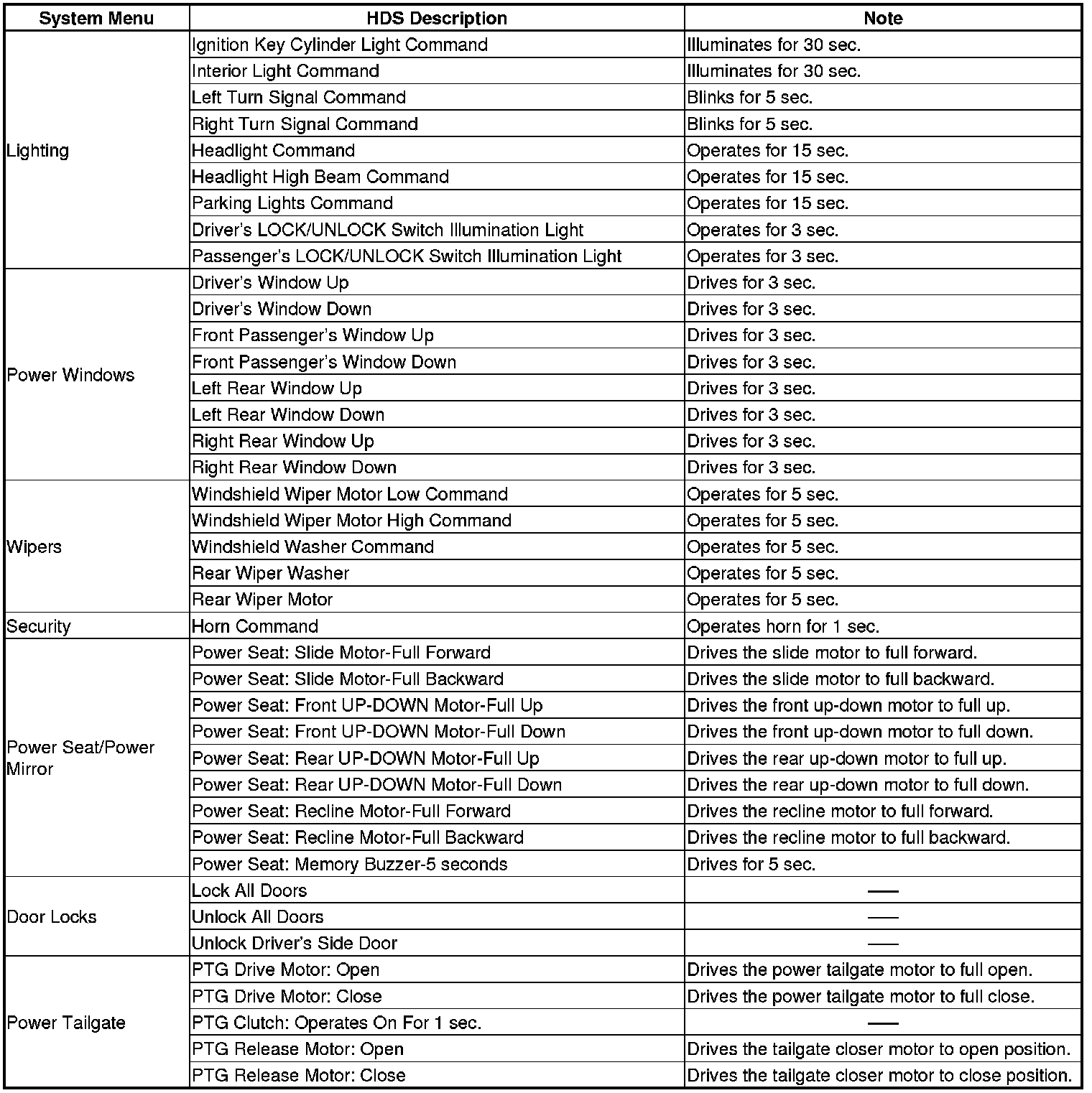 By connecting the HDS to the data link connector (DLC), the HDS can retrieve the diagnostic information from the MICU via a diagnostic BUS called the K-LINE. The K-LINE is a separate communication line that is connected to some of the CAN-related ECUs. The MICU is a gateway between the HDS and B-CAN related ECUs, and sends B-CAN diagnostic information to the HDS. When doing a function test with the HDS, the HDS sends an output signal through the K-LINE to the MICU. The MICU either relays the request to another ECU, or commands the function itself.