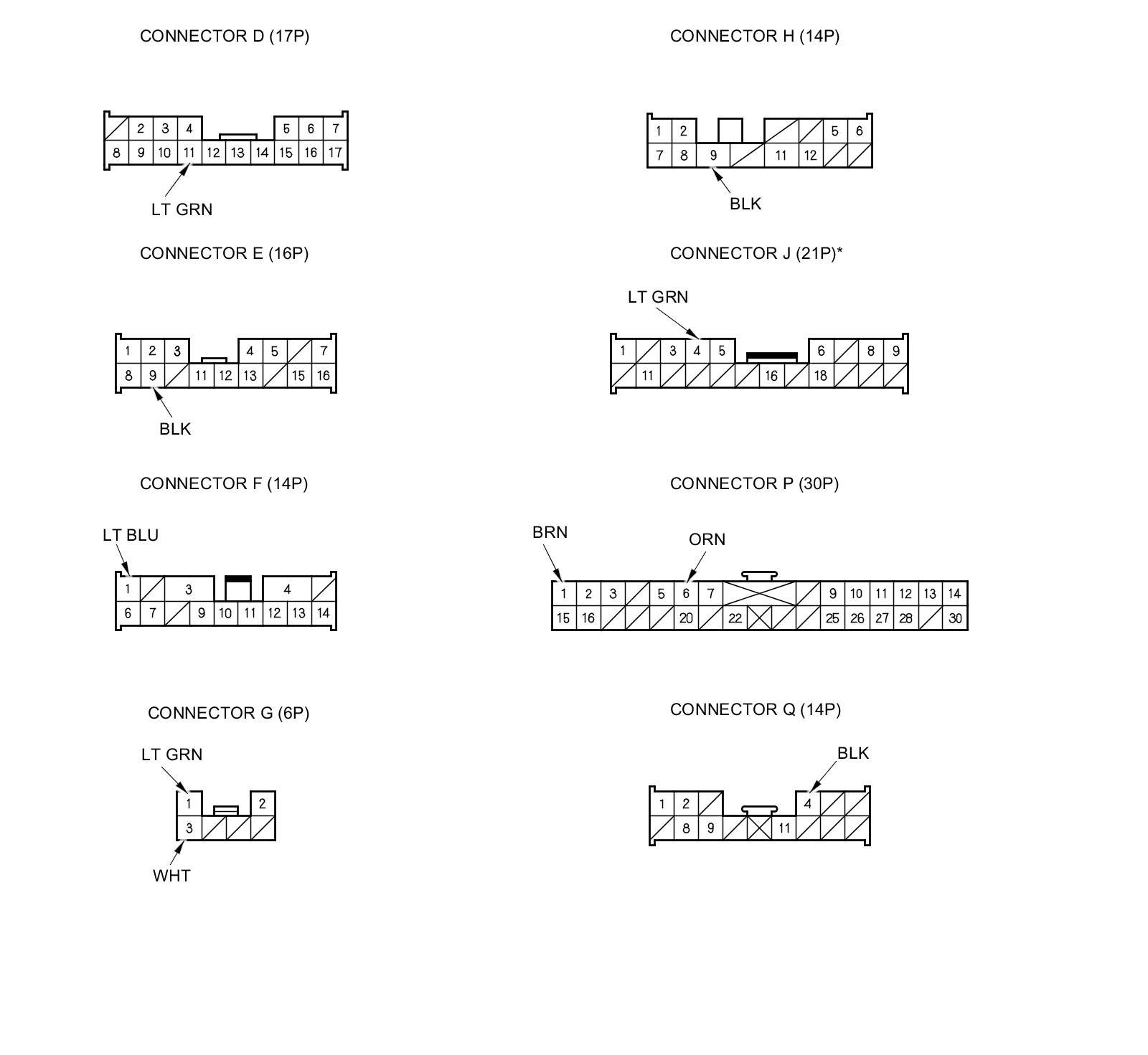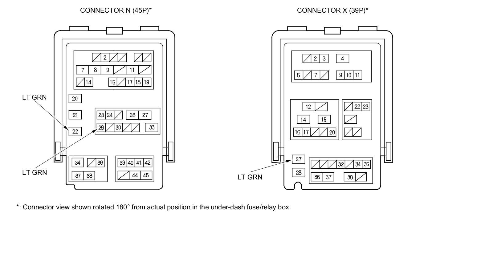 NOTE: All connector views are wire side of female terminals.