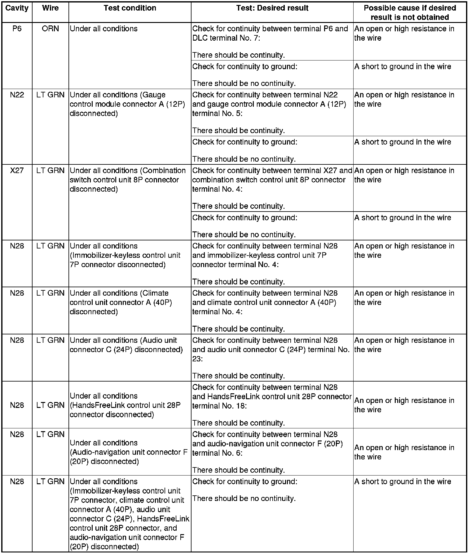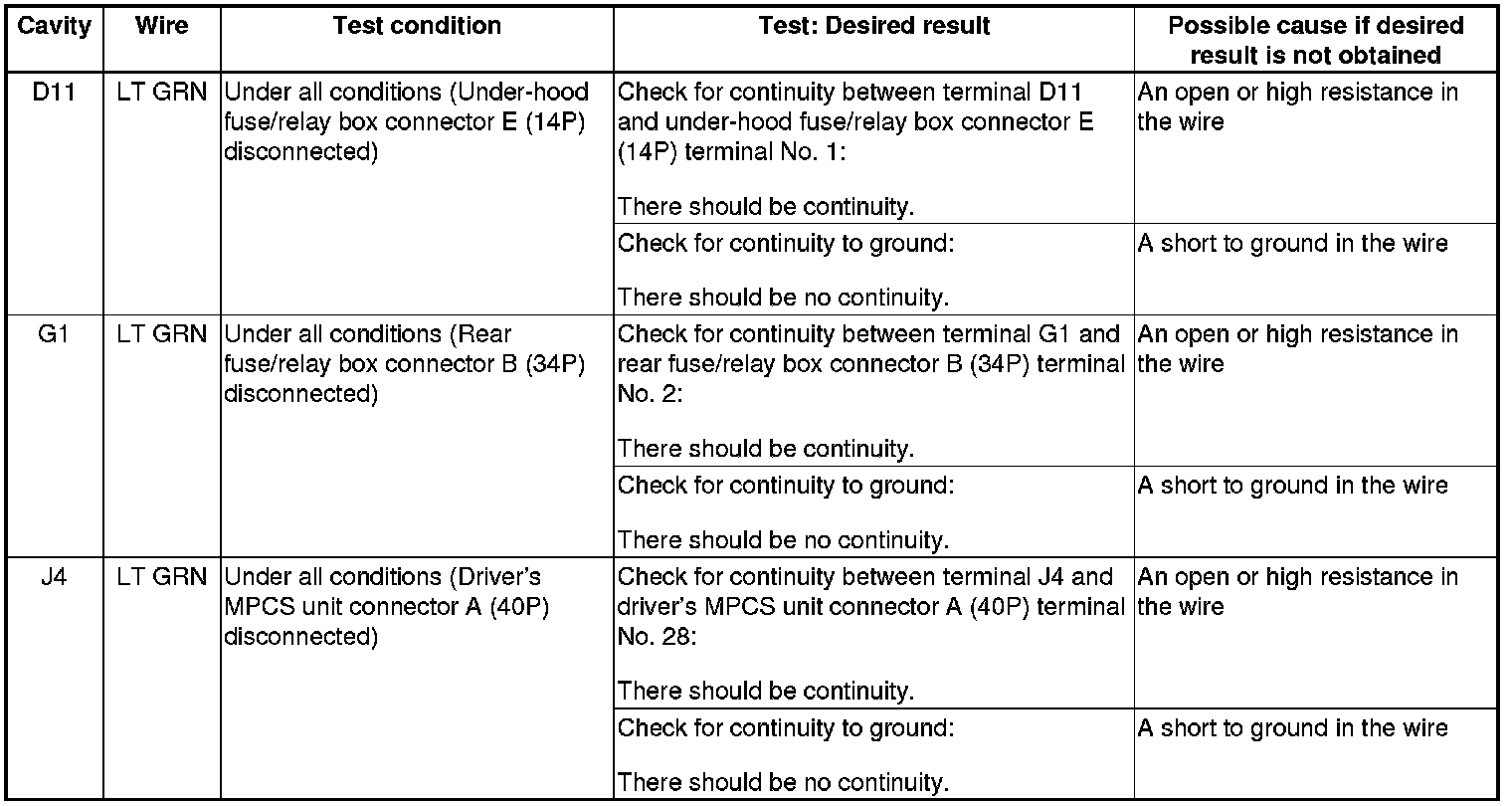 NOTE: Before testing, troubleshoot the multiplex integrated control unit first, using B-CAN System Diagnosis Test Mode A Troubleshooting - B-CAN System Diagnosis Test Mode A.