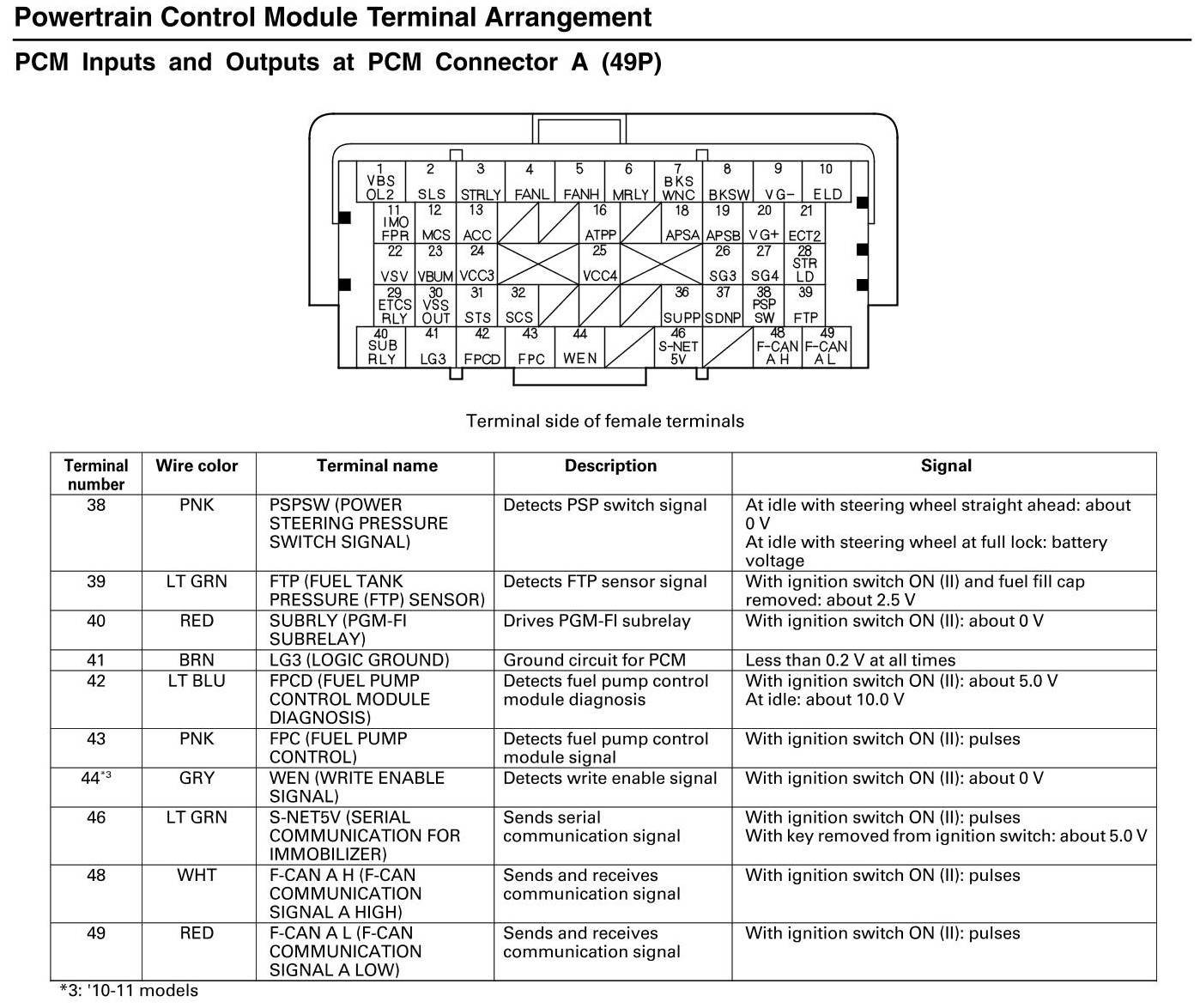 PCM Inputs And Outputs At PCM Connector A (49P)