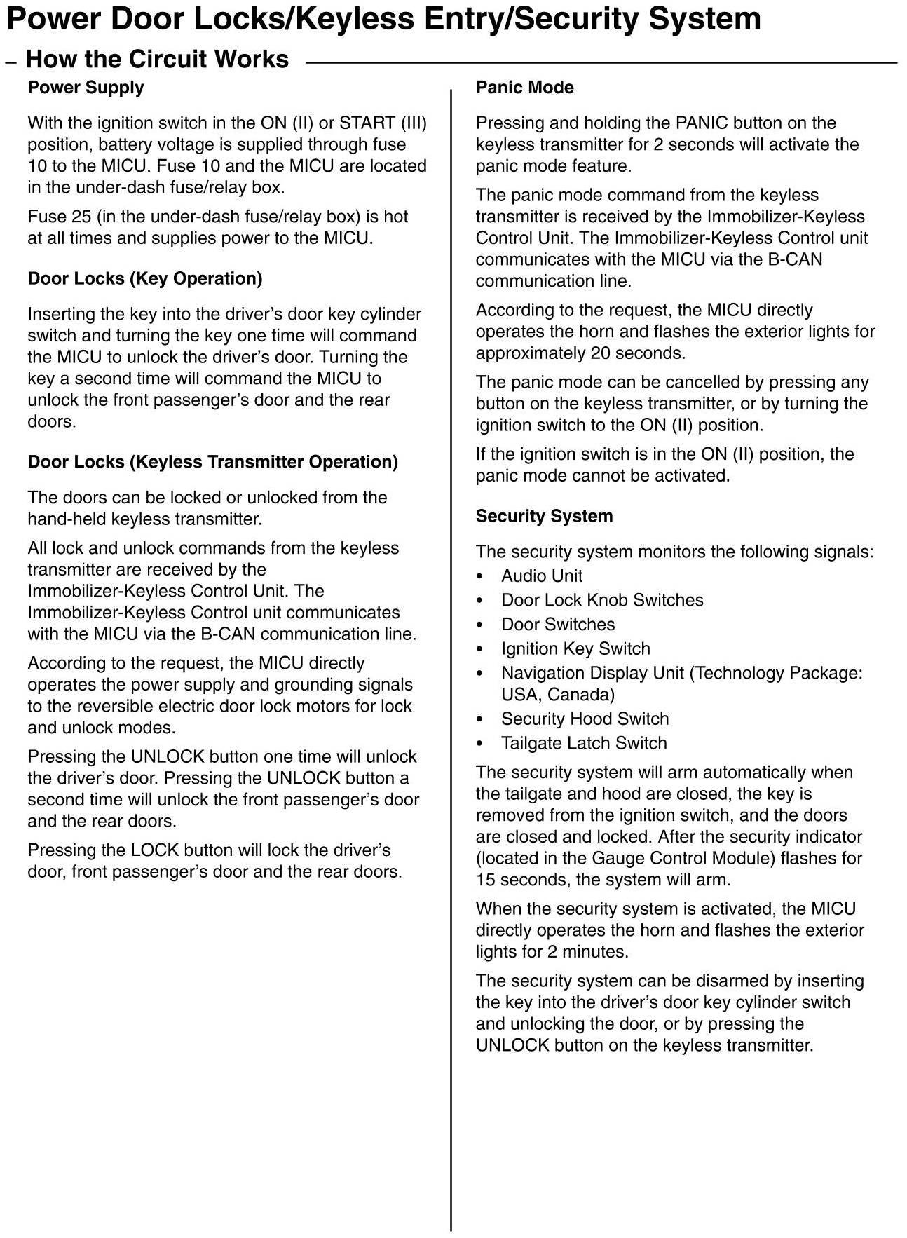 Home >> Acura >> 2012 >> RDX AWD L4-2.3L Turbo >> Repair and Diagnosis >> Body and Frame >> Locks >> Keyless Entry >> Description and Operation >> How The Power Door Locks/Keyless Entry/Security System Circuit Works