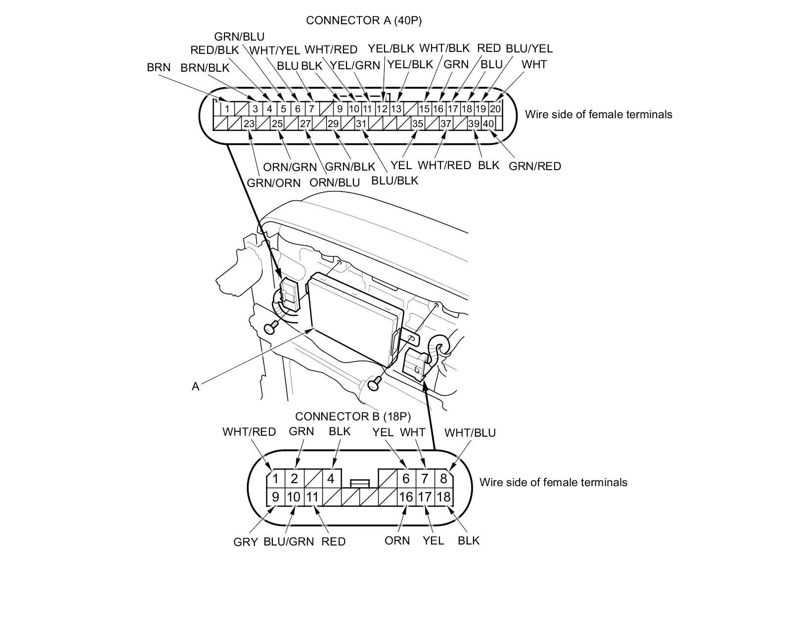 3. Disconnect the connectors from the power seat control unit (A).