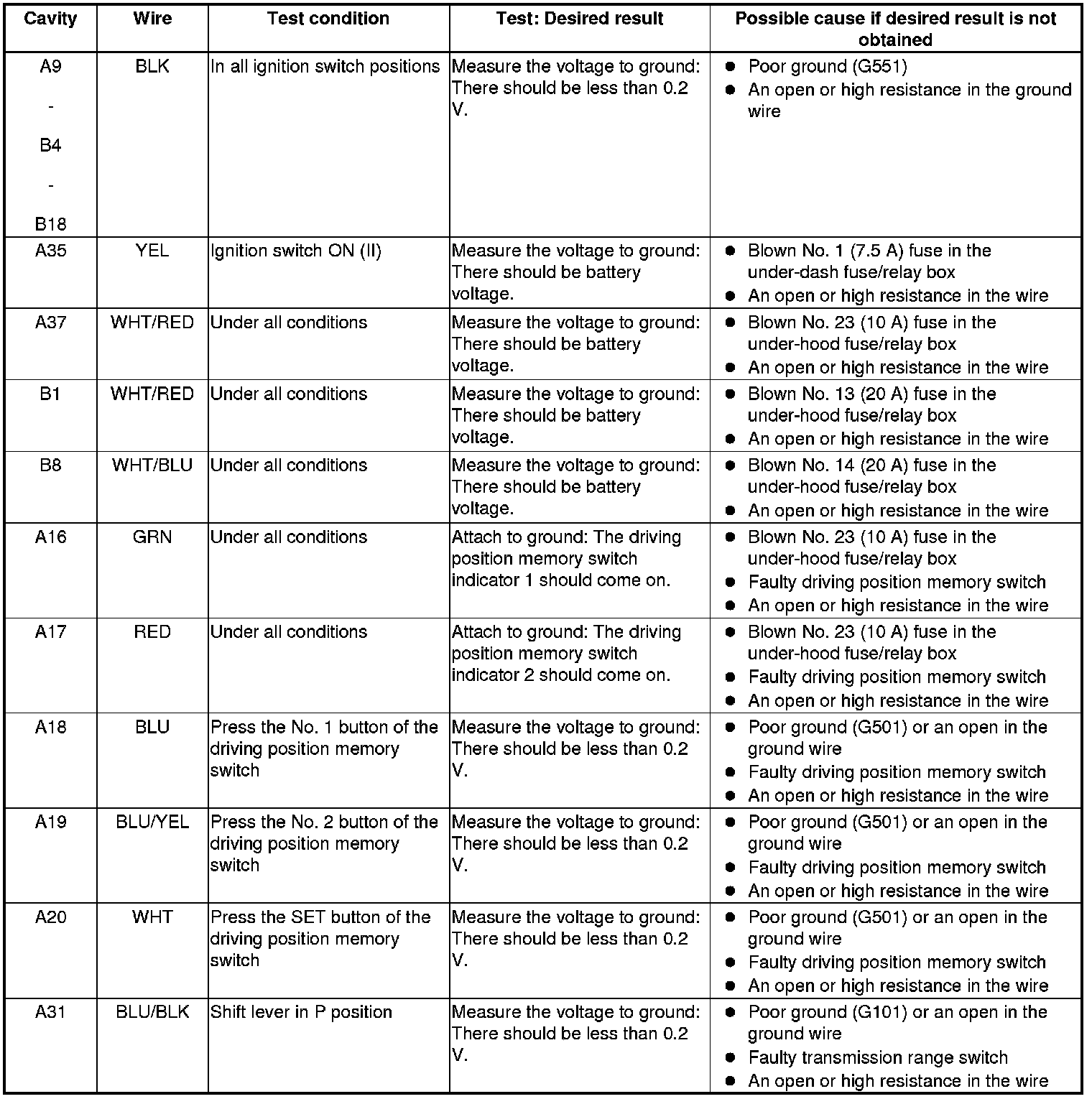 Power Seat Control Unit Input Test/Replacement