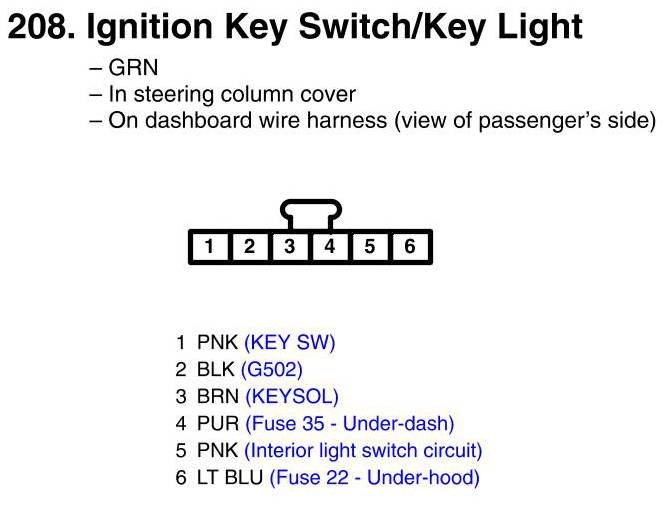 View 208 - Ignition Key Switch/Key Light Connector View