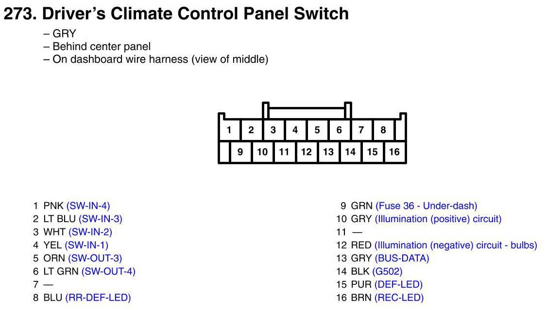 Driver's Climate Control Panel Switch Connector View