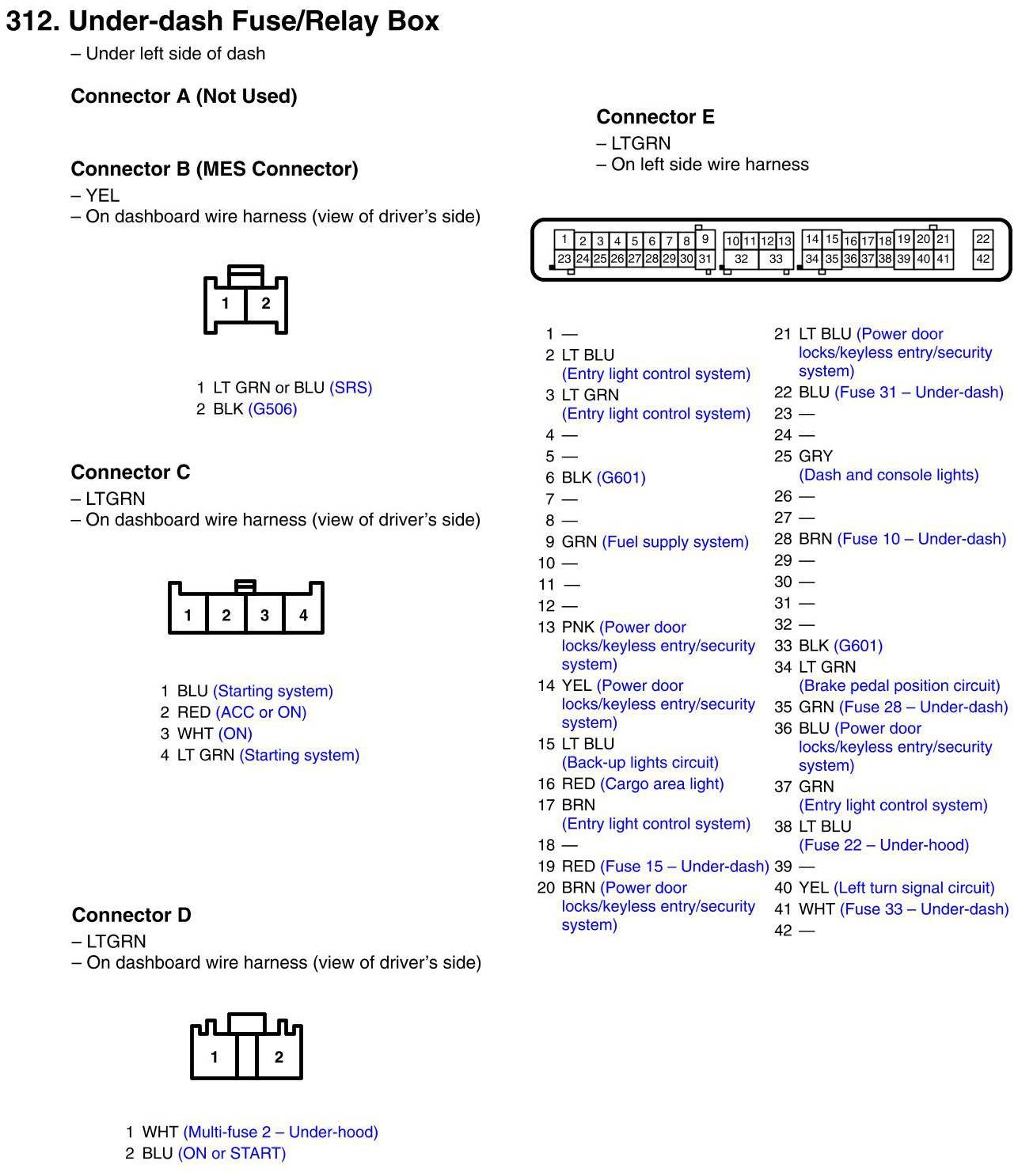 Under-dash Fuse/Relay Box Connector View