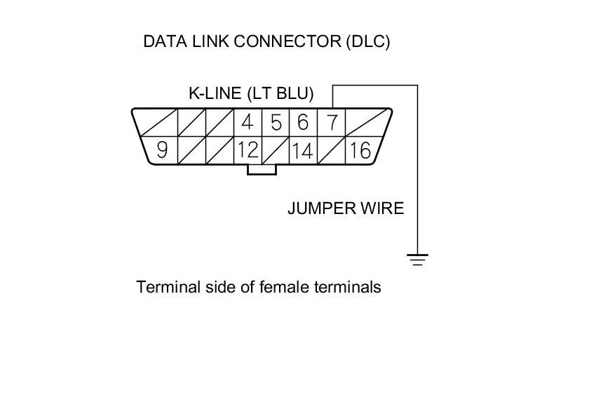 21. Connect DLC terminal No. 7 to body ground with a jumper wire.