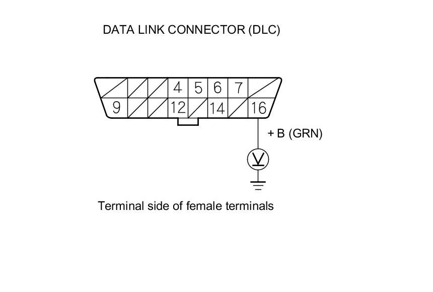26. Measure the voltage between DLC terminal No. 16 and body ground.