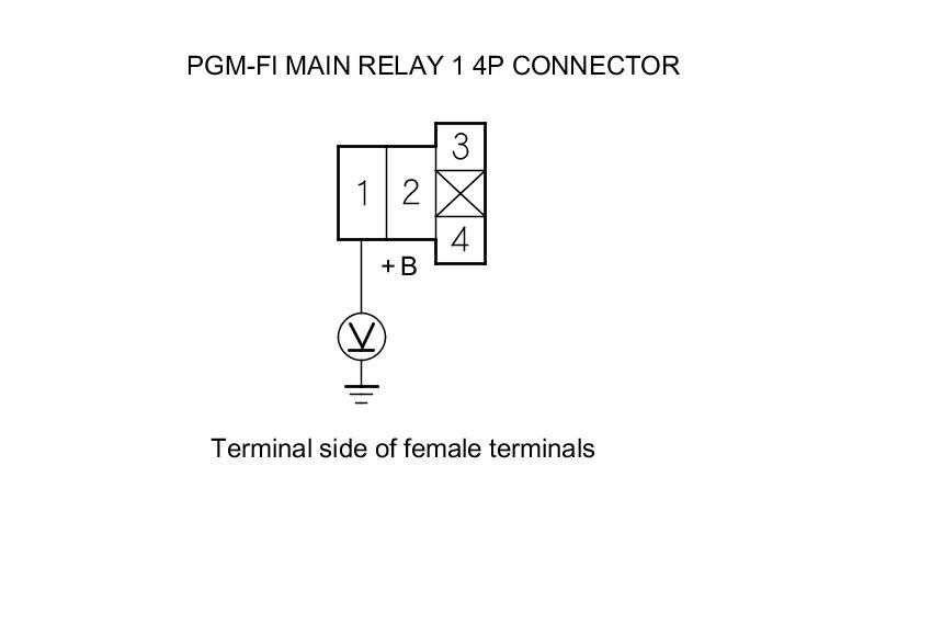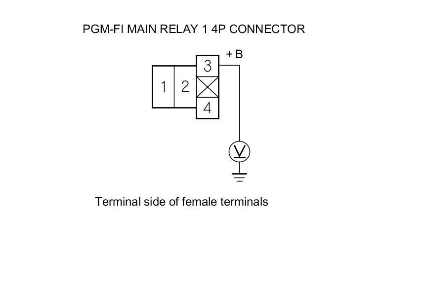 58. Measure the voltage between PGM-FI main relay 1 4P connector terminal No. 3 and body ground.