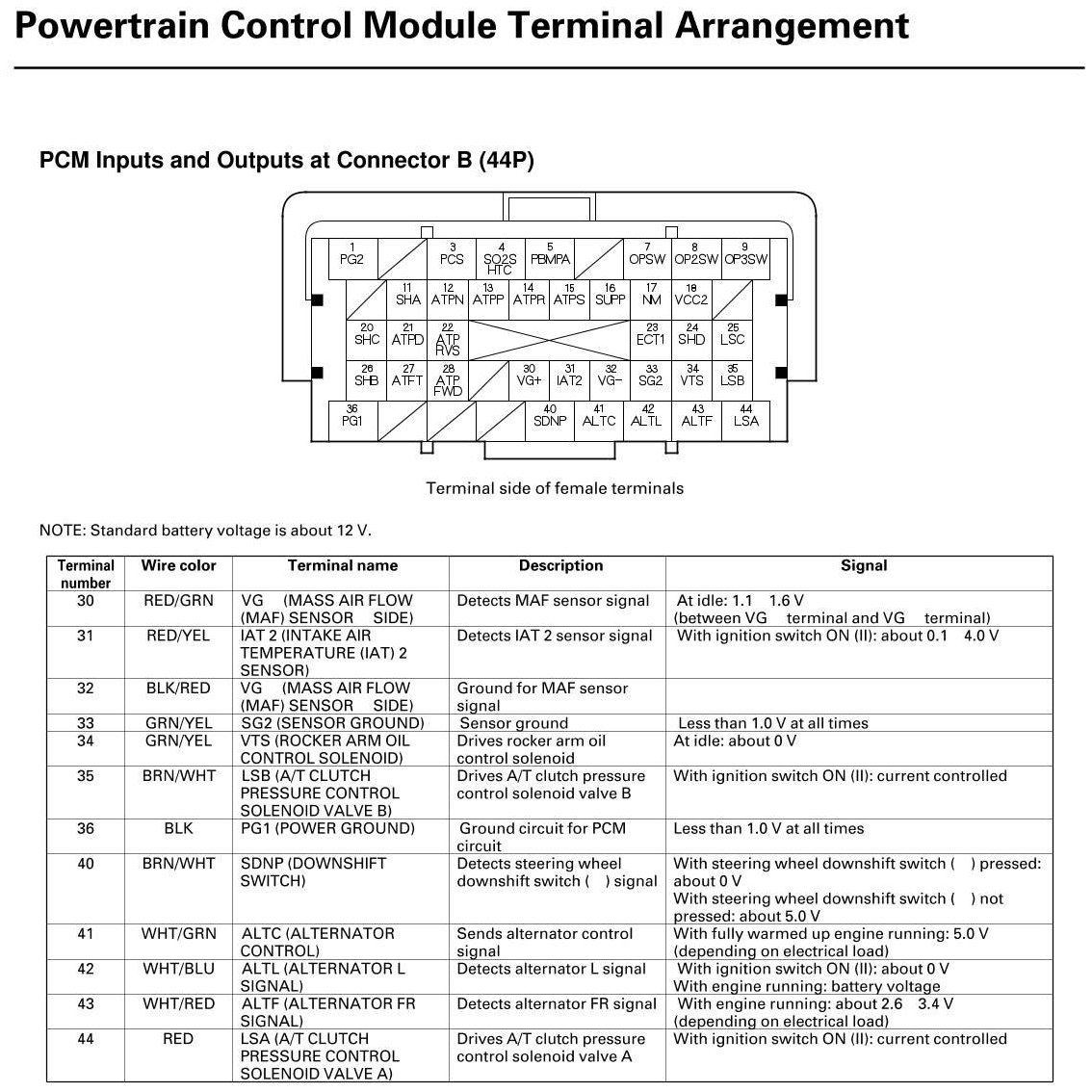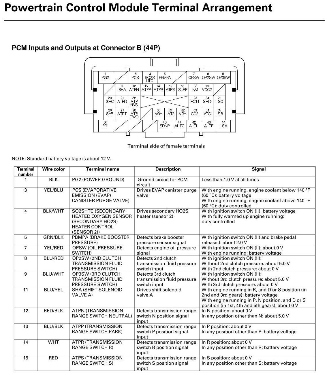 PCM Inputs And Outputs At Connector B (44P)