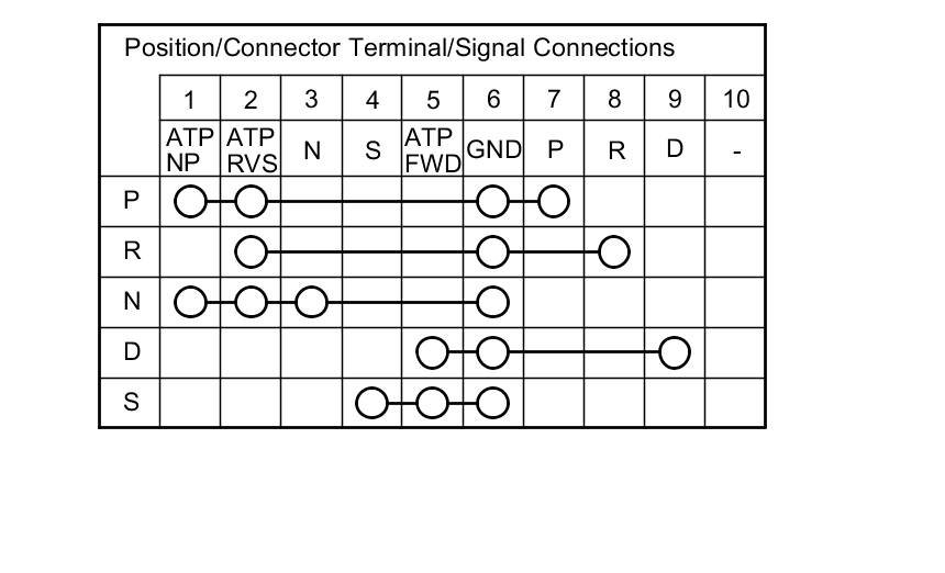 5. Transmission range switch test is finished if the test results are OK. If there is no continuity between any terminals, check that the transmission range switch installation. If the switch installation is OK, replace the transmission range switch Service and Repair.
