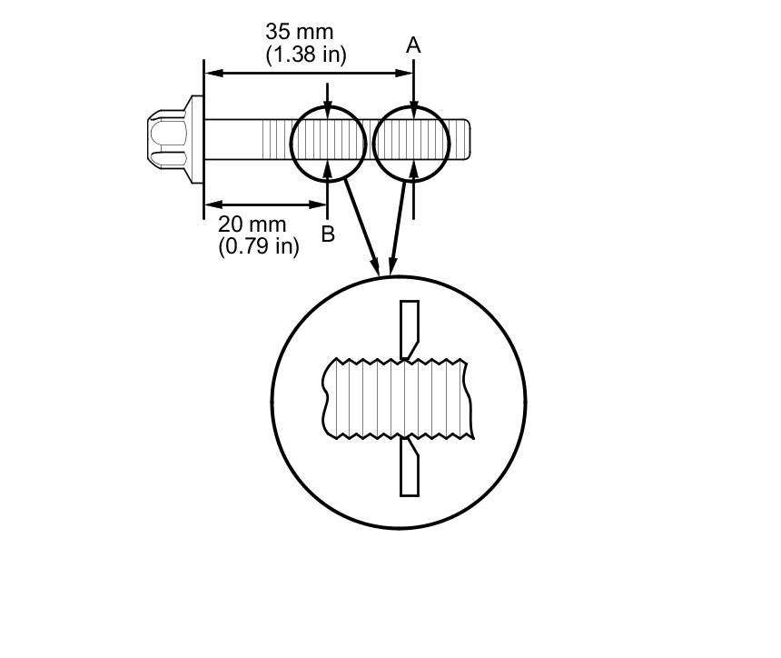 Measure the diameter of each connecting rod bolt at point A and point B.