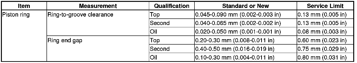 Piston Ring Specification(s)