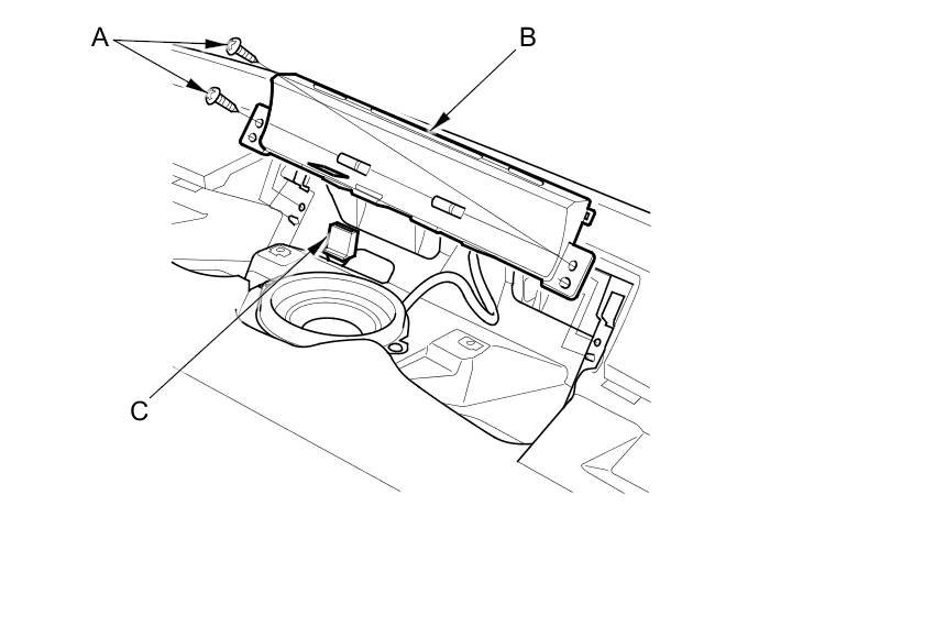 3. Disconnect the connector (C), and remove the audio-HVAC subdisplay unit.