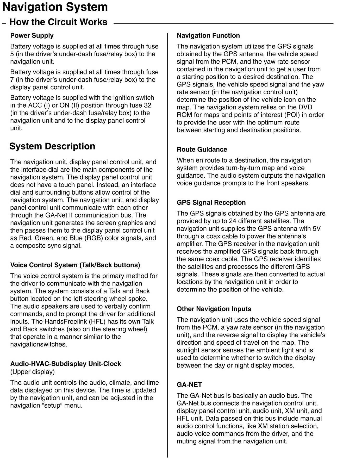 Home >> Acura >> 2012 >> RL V6-3.7L >> Repair and Diagnosis >> Accessories and Optional Equipment >> Navigation System >> Description and Operation >> How The Navigation System Circuit Works