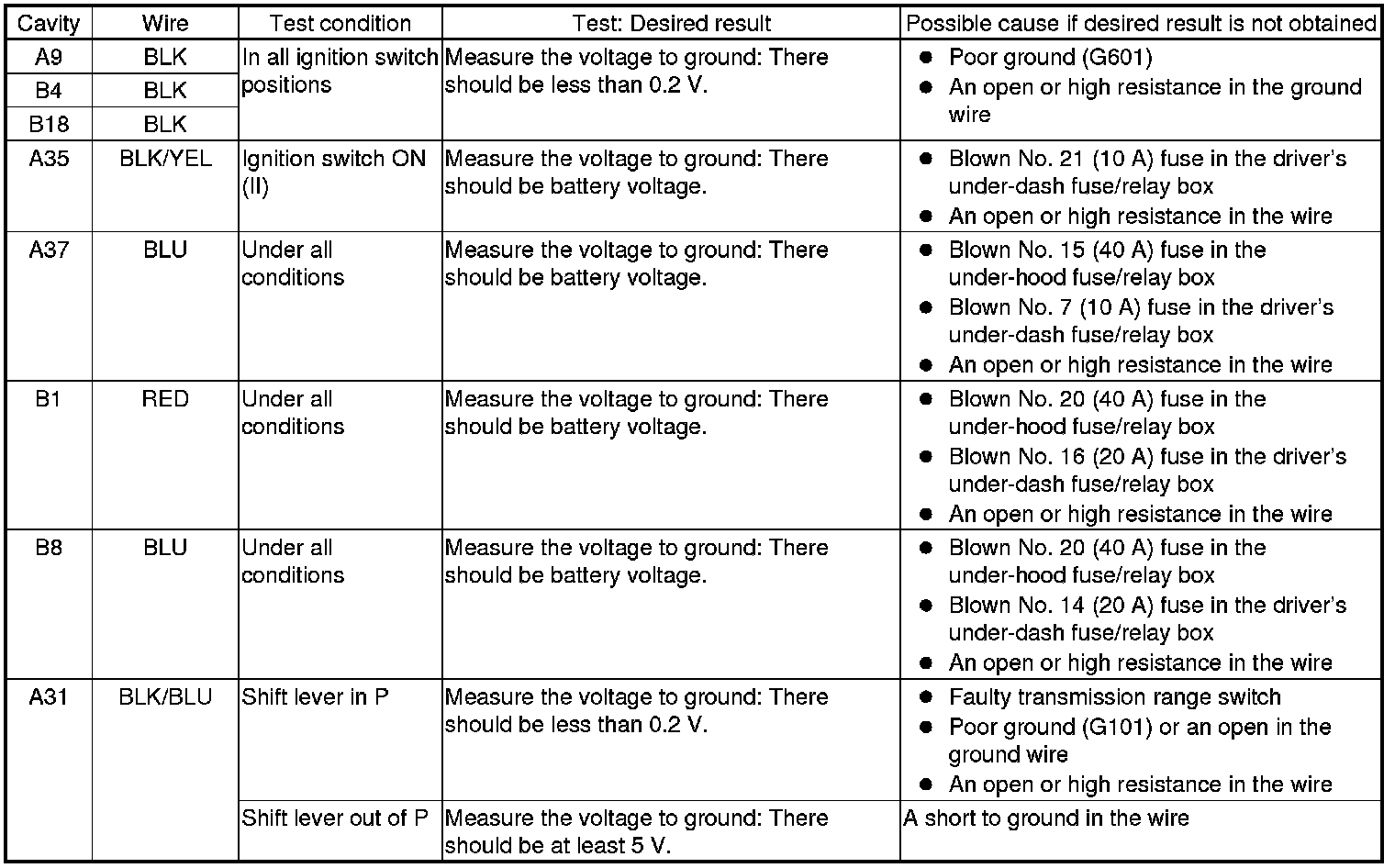 - If all the input tests prove OK, the control unit must be faulty; replace it.