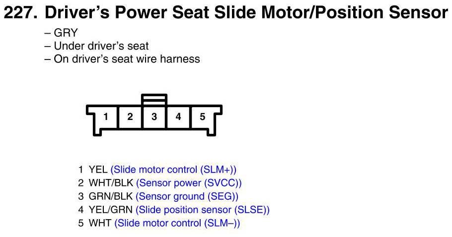 View 227 - Driver's Power Seat Slide Motor/Position Sensor Connector View