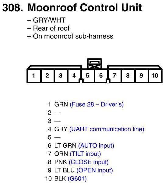 View 308 - Moonroof Control Unit Connector View