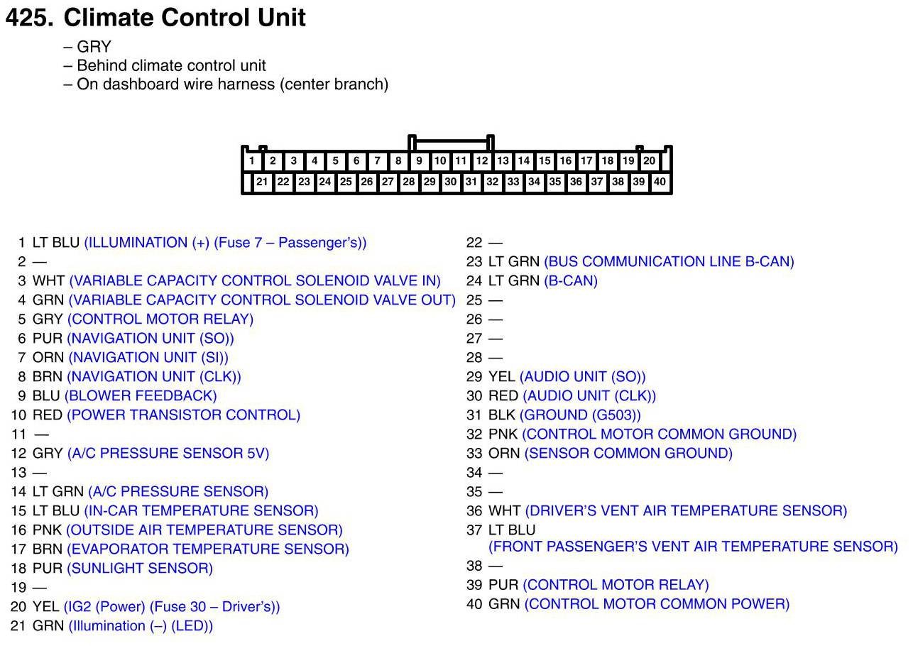 View 425 - Climate Control Unit Connector View