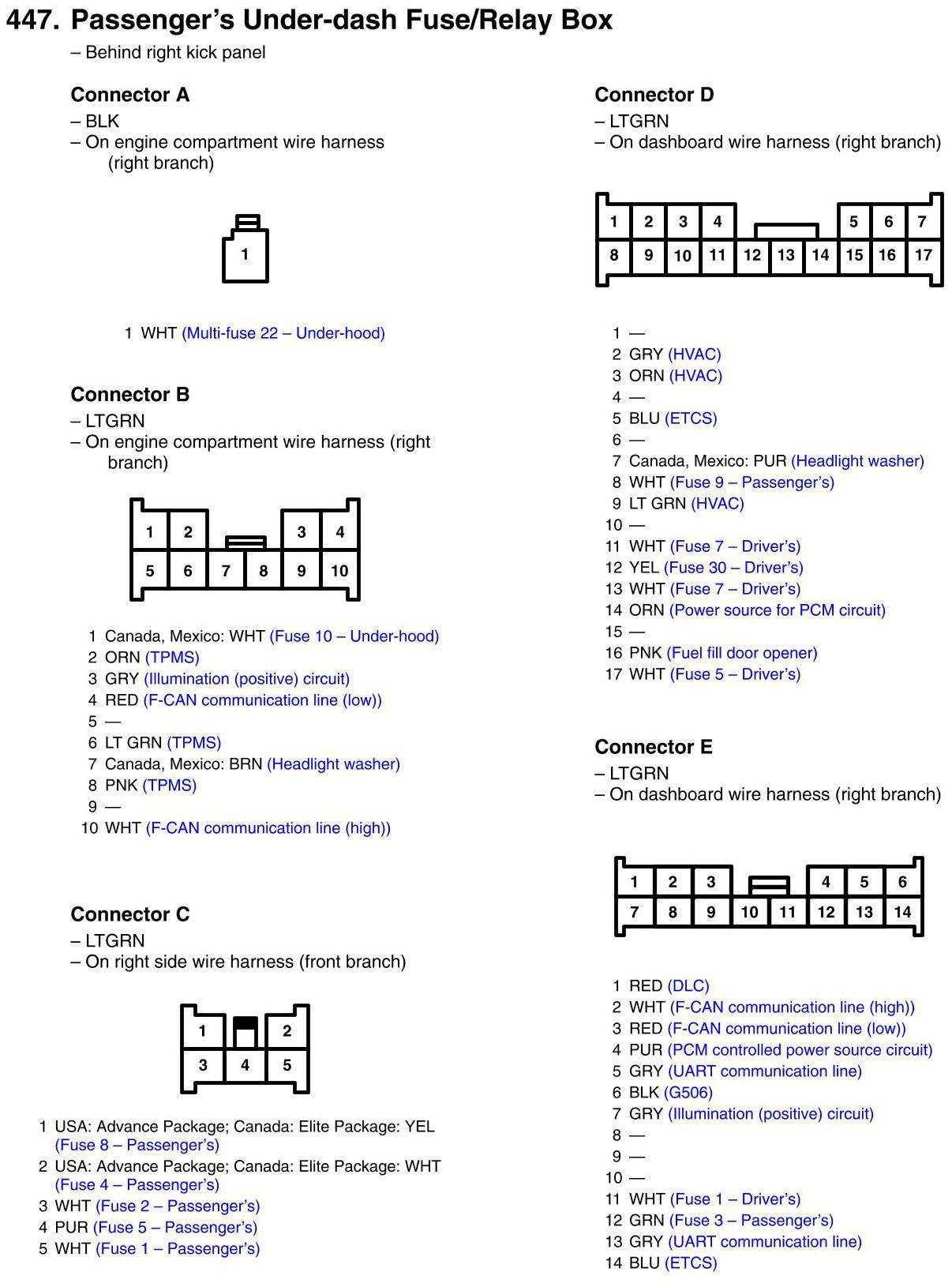 Passenger's Under-dash Fuse/Relay Box Connector View
