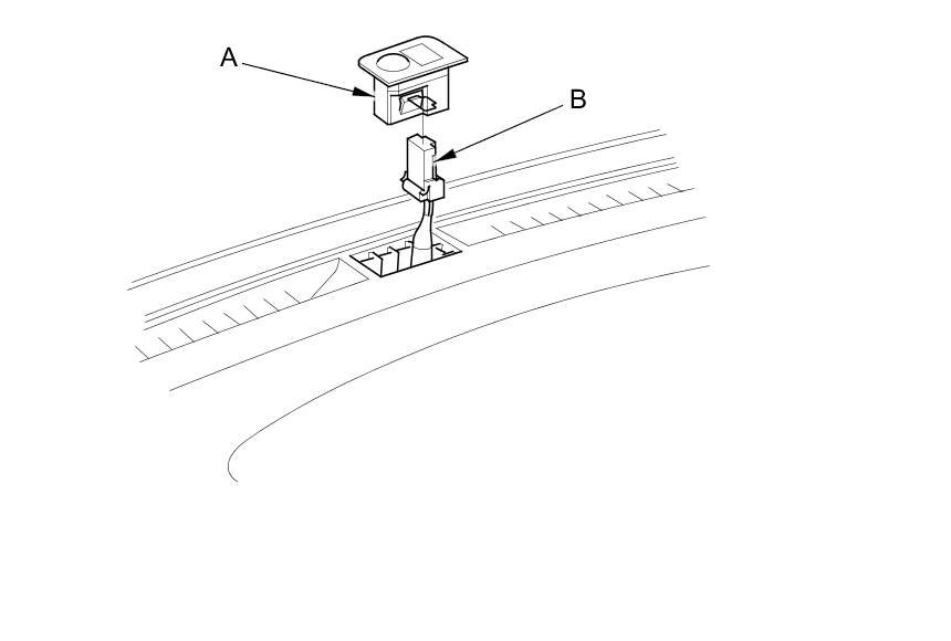 1. Remove the sunlight sensor (A) from the dashboard, then disconnect the 5P connector (B). Be careful not to damage the sensor and the dashboard.