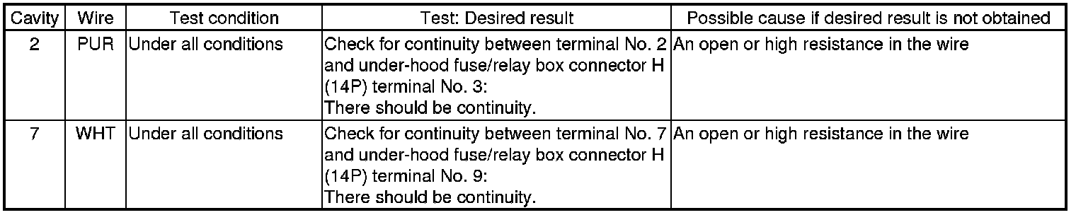 5. Disconnect the 14P connector from the daytime running lights control unit, and do the following input tests.