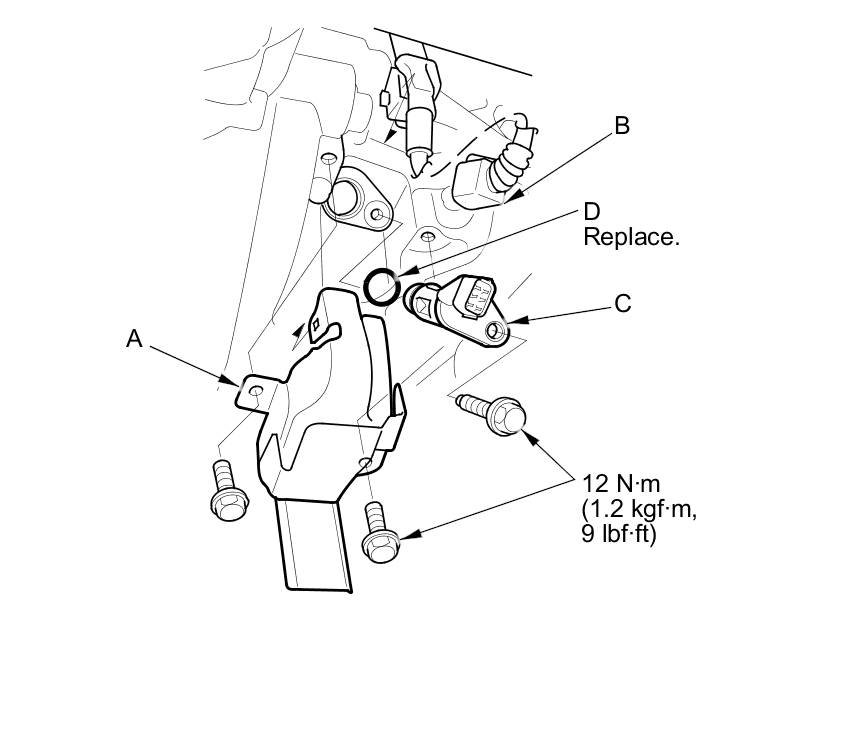 5. Install the parts in the reverse order of removal with a new O-ring (D).