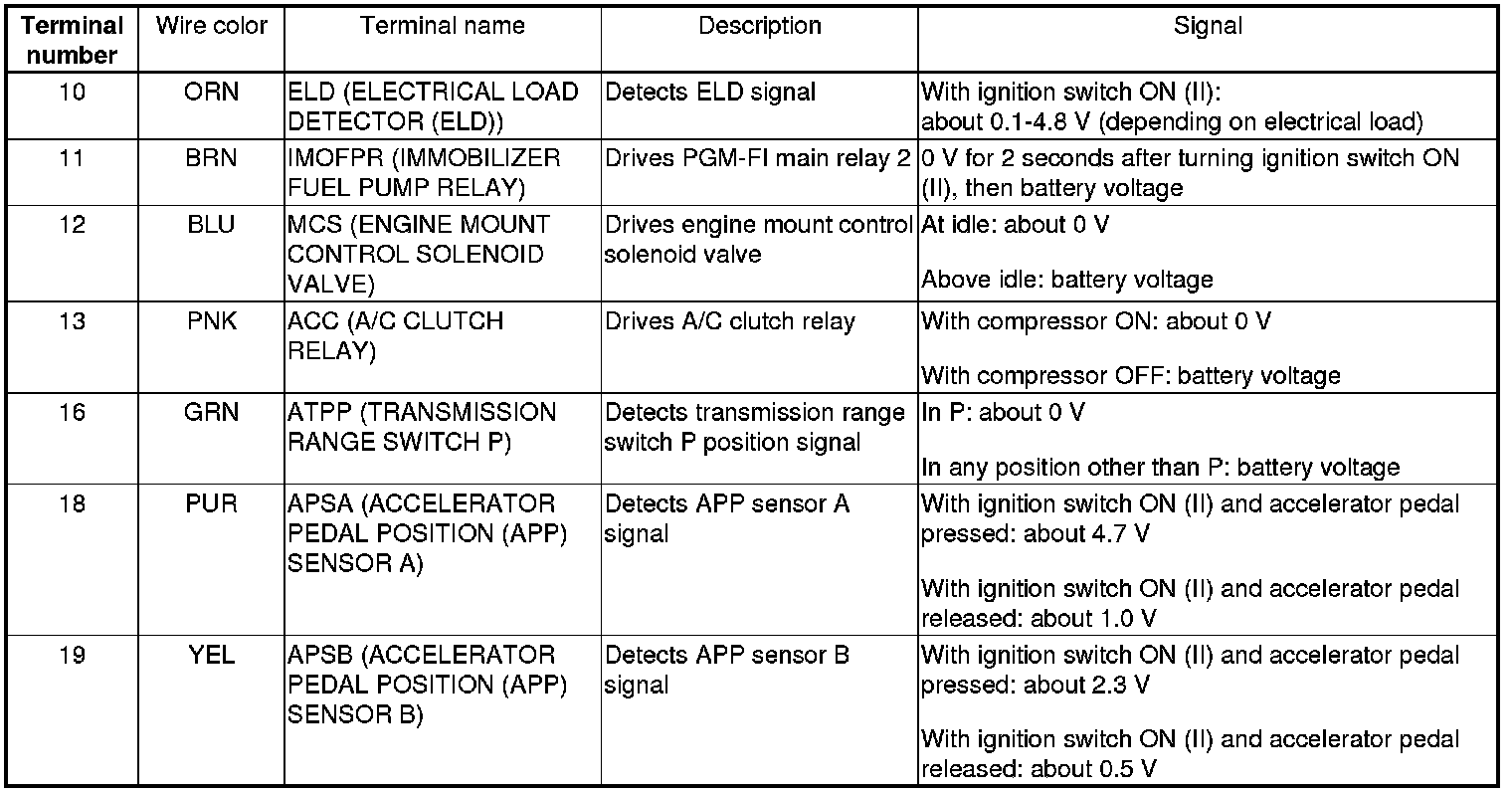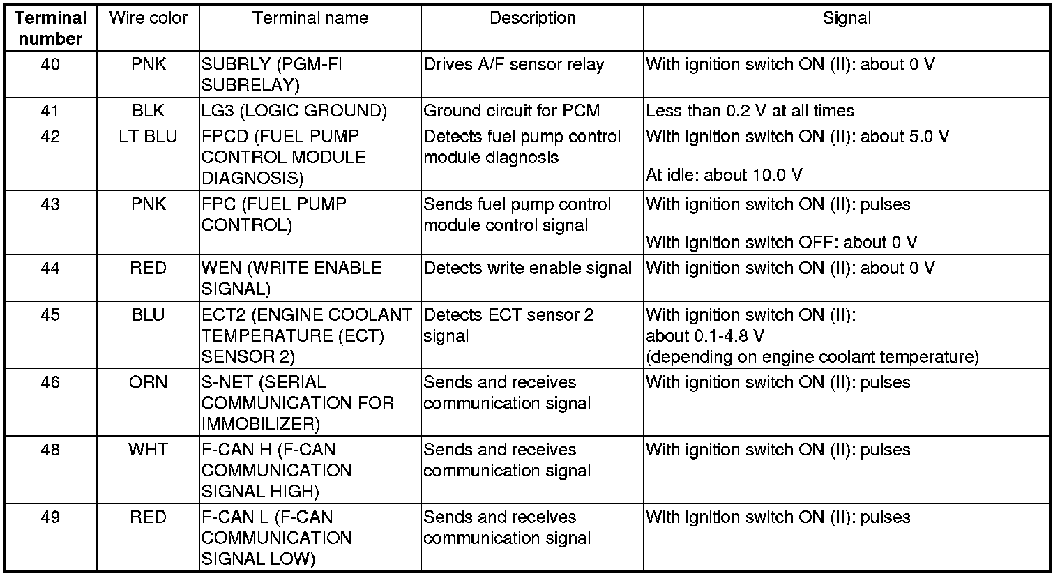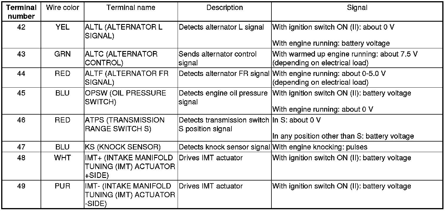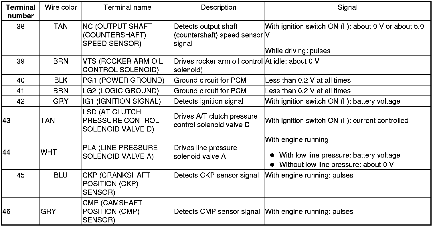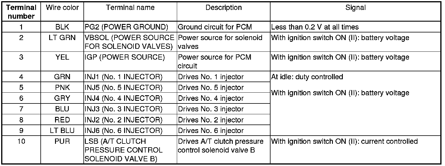 PCM Inputs and Outputs at PCM Connector A (square) (49P)