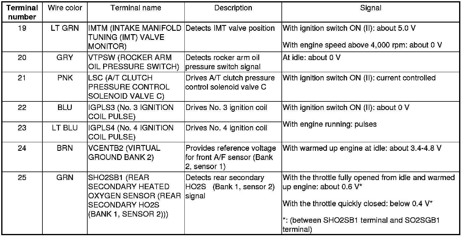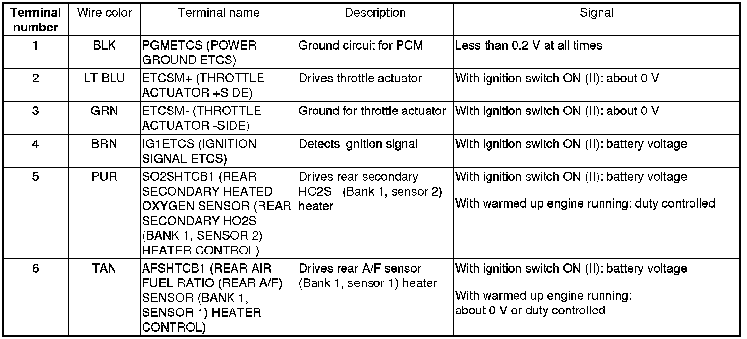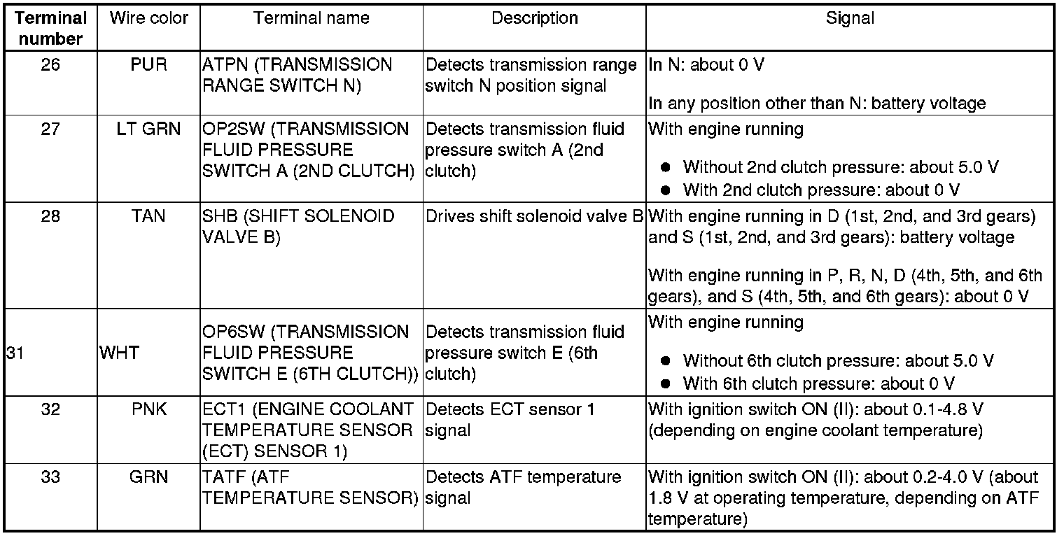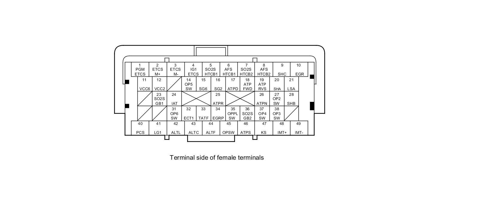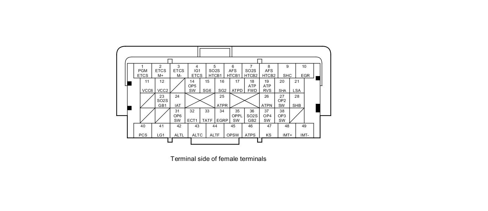 PCM Inputs and Outputs at PCM Connector A (square) (49P)